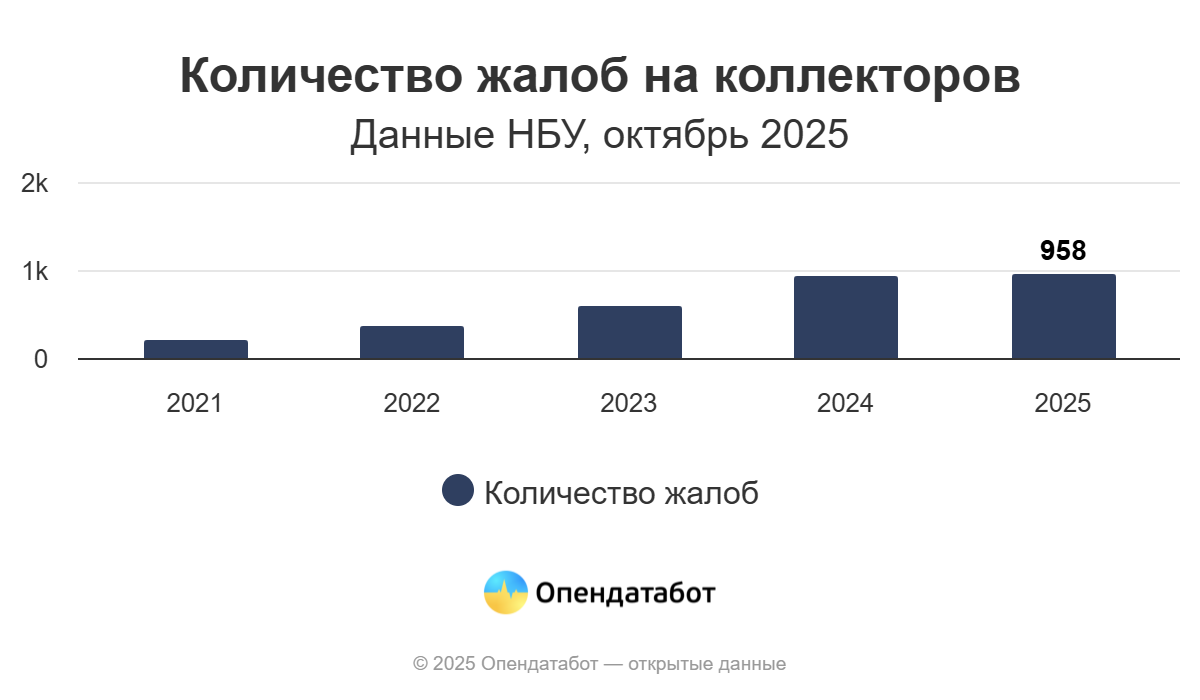 С момента вступления в силу нового закона о коллекторской деятельности в 2021 году НБУ получил 3 101 жалобу на работу коллекторов. Более 60% этих жалоб поступило только за последние два года.