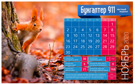 Качайте новые ноябрьские календари бухгалтерского рабочего времени, все успевайте и оставайтесь в тонусе!