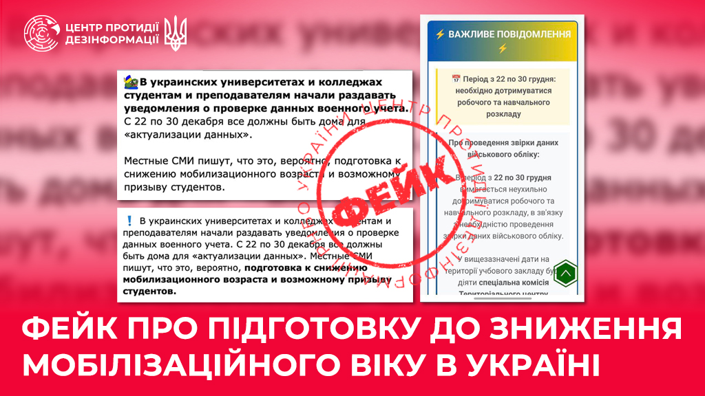 Как «доказательство» приводятся объявления об «актуализации данных военного учета» в период с 22 по 30 декабря в одном из украинских колледжей.