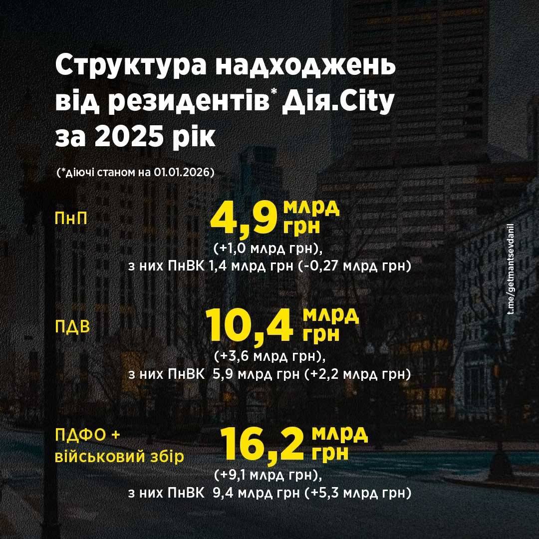 🔹За 2025 год резиденты уплатили в бюджет 31,5 млрд грн (без учета ЕСВ), что на 13,7 млрд грн больше, чем в прошлом году. Часть этой суммы – 16,8 млрд грн – обеспечили плательщики ПнВК (+7,7 млрд грн к показателям 2024 года).