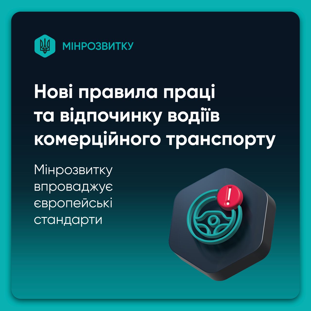«С одной стороны, мы переходим от формальных норм к реальной защите водителей и повышению безопасности на дорогах. С другой, снимаем нагрузку с тех предприятий, где такое регулирование на данный момент не актуально – например, транспорта сил безопасности и обороны, аварийных служб, сельскохозяйственных, коммунальных, почтовых и отдельных специализированных перевозок. Ранее такое требование существовало и создавало необоснованную нагрузку для предприятий. Четкие правила труда и отдыха – это не бюрократия, а вопрос жизни, здоровья и достойных условий работы. Гармонизация с европейскими стандартами означает понятные правила для бизнеса и водителей и интеграцию Украины в общий транспортный простор ЕС», – отметил Сергей Деркач, заместитель Министра развития общин и территорий Украины.