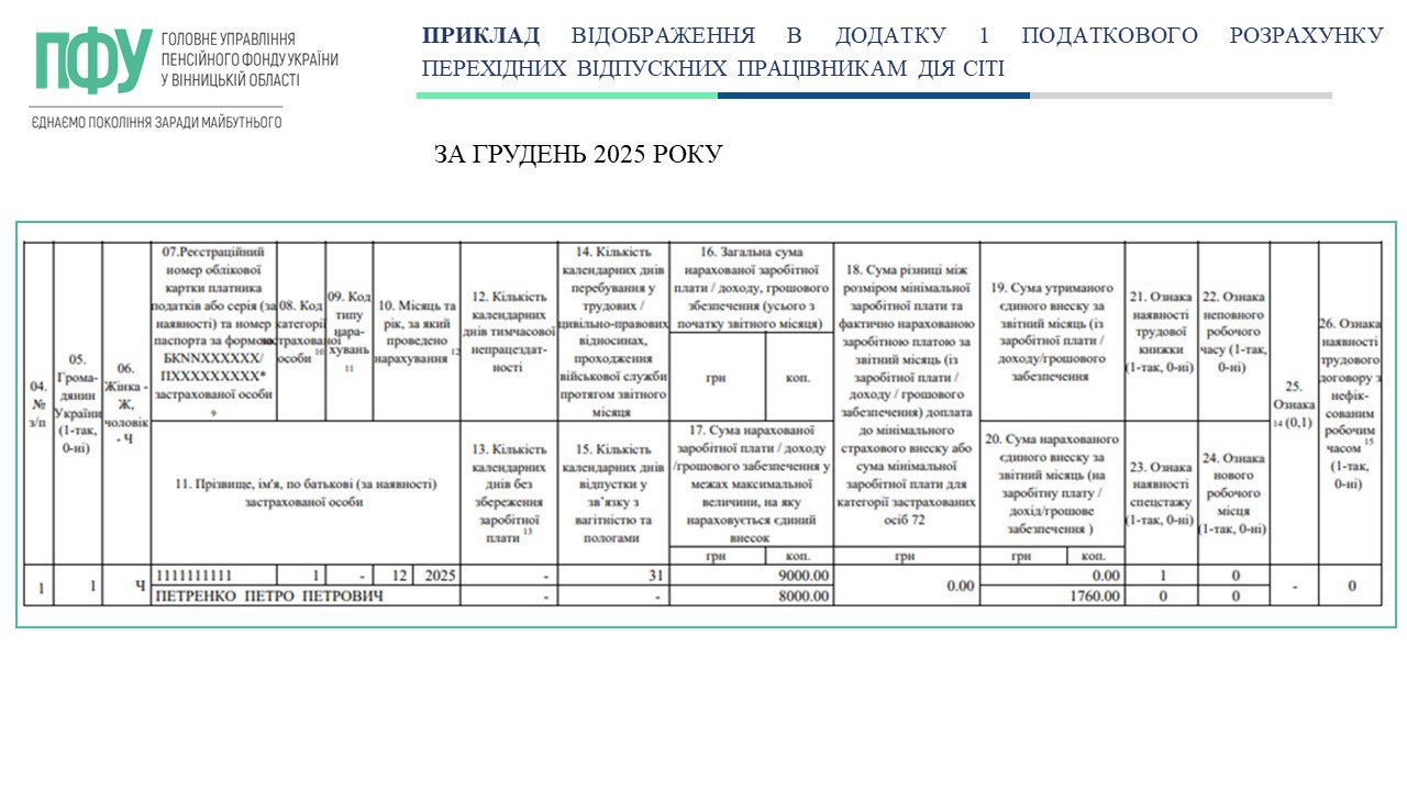 Начисление ЕСВ и отображение в приложении 1 Налогового расчета переходных отпускных работникам Дія Сіті