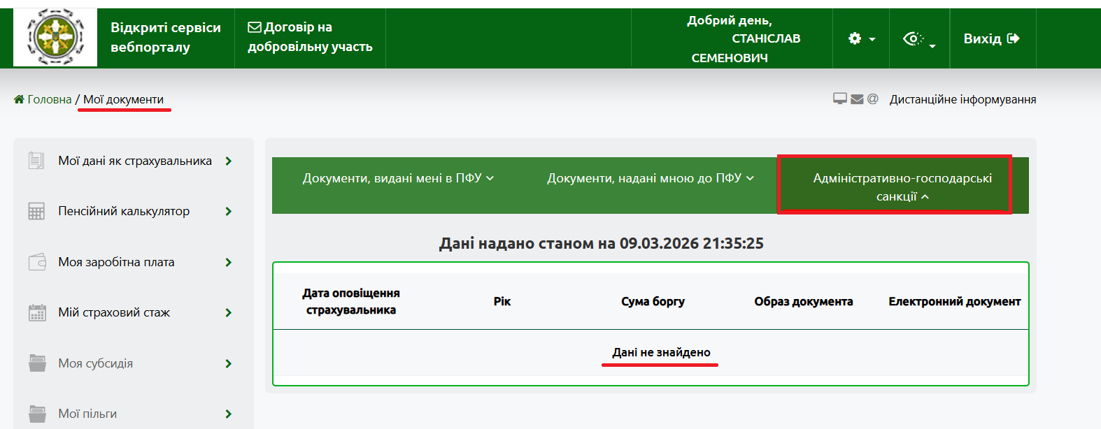 Уведомление о начисленных санкциях направляется в электронном виде через кабинет на портале электронных услуг Пенсионного фонда Украины.