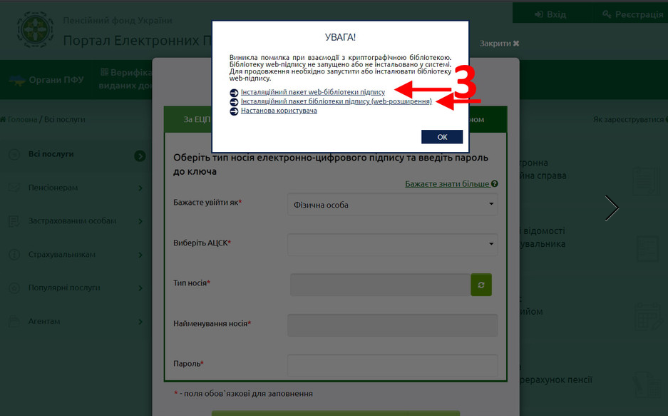Авторізація на порталі ПФУ токенами з ключами АЦСК "Україна".