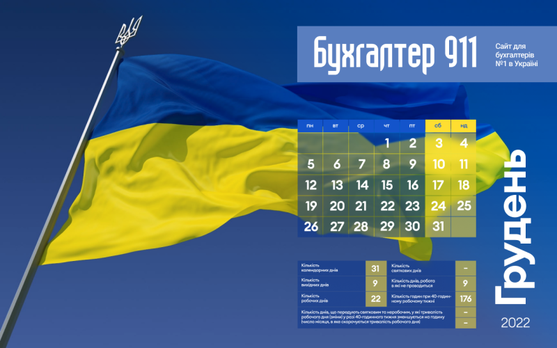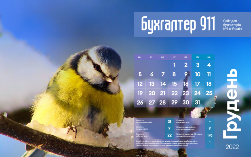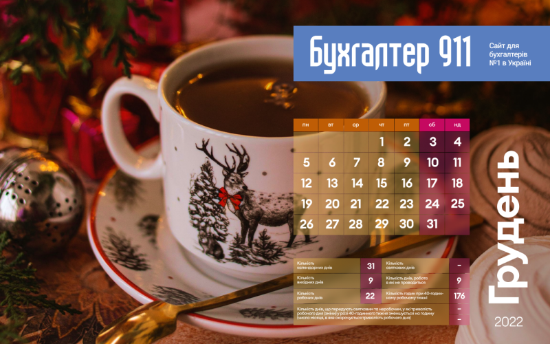 Нові заставки з календарем робочого часу на грудень 2022 року
