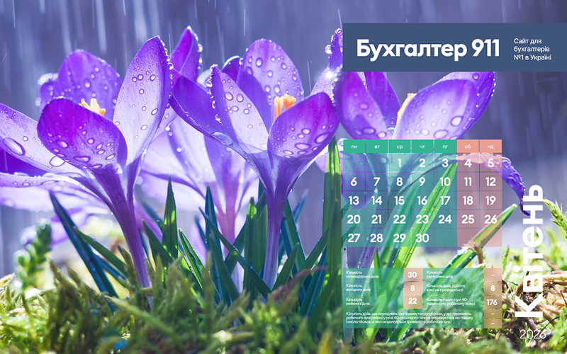 Календар бухгалтера на квітень 2026 року: багато весняних заставок
