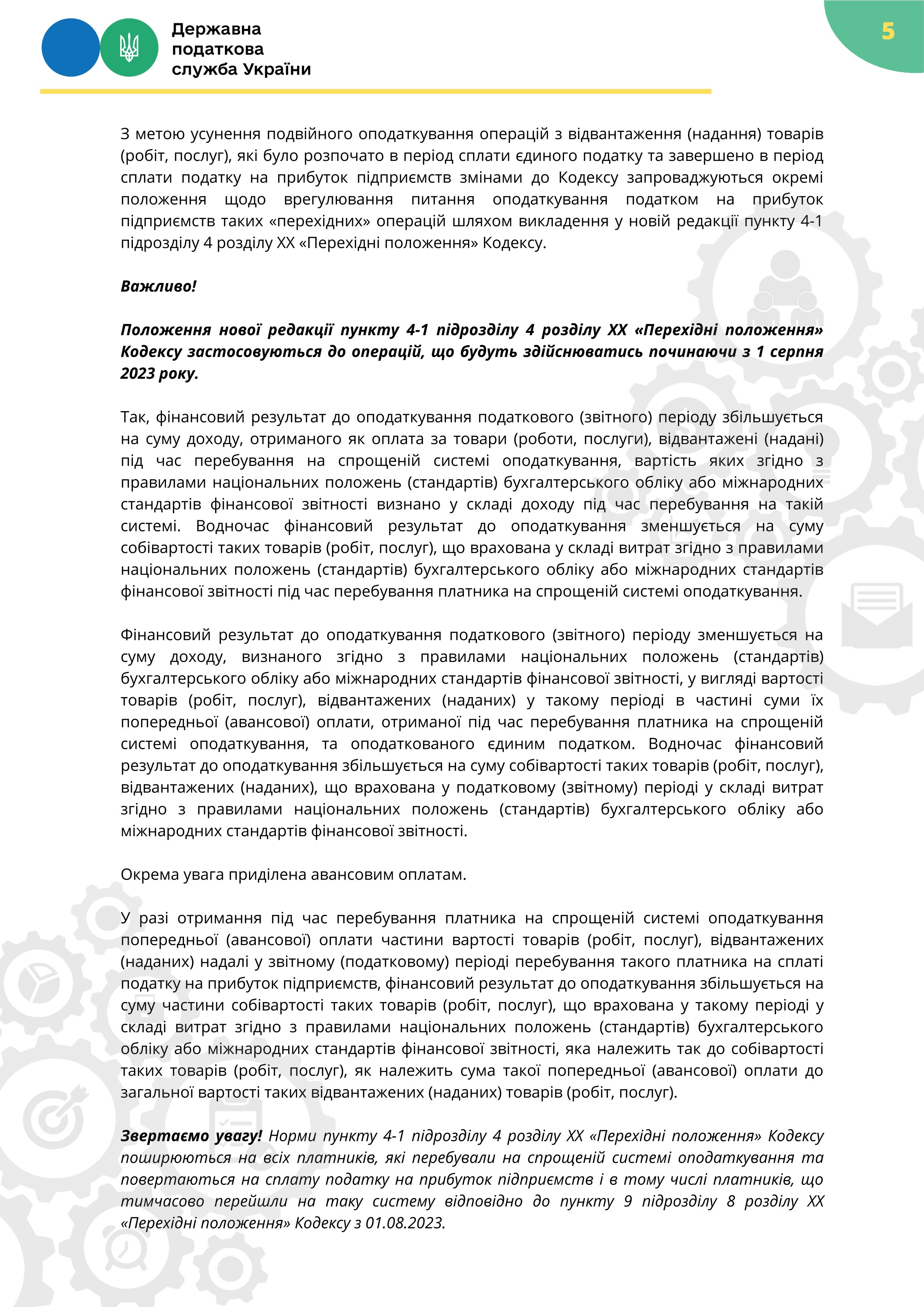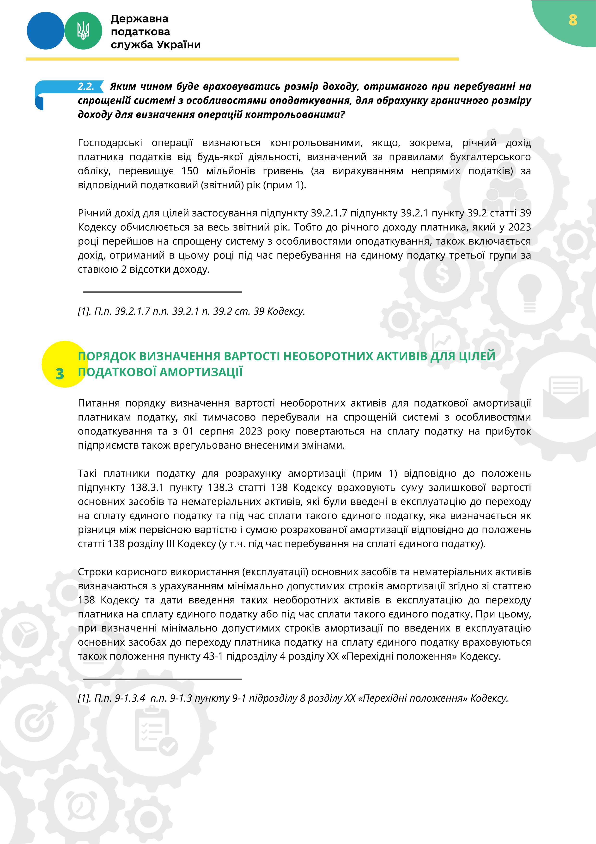 Податківці розповіли про зміни, запроваджені Законом України від 30 червня 2023 року № 3219-ІХ «Про внесення змін до Податкового кодексу України та інших законів України щодо особливостей оподаткування у період дії воєнного стану», зокрема в частині особливостей оподаткування платника податку при переході зі спрощеної системи оподаткування з відсотковою ставкою єдиного податку у розмірі 2 % на систему оподаткування, на якій він перебував до обрання згаданих особливостей оподаткування.