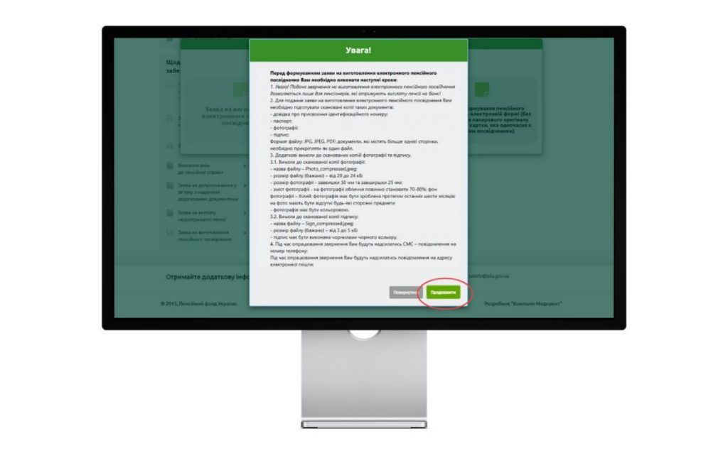4. У вікні, що з’явиться, уважно ознайомтесь з інструкцією та натисніть кнопку “Продовжити”.