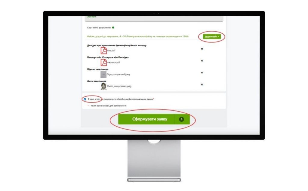 6. Прикріпіть заздалегідь відскановані документи (див. розділ “Важливо!”) та натисніть “Сформувати заяву”.
