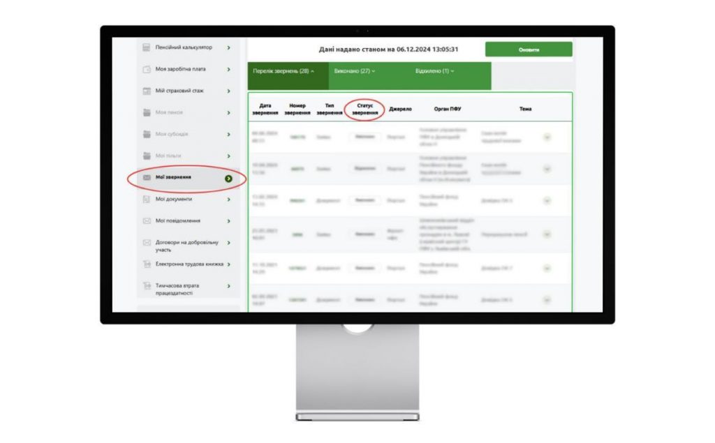 З результатом опрацювання заяви можна ознайомитись в особистому кабінеті на вебпорталі Пенсійного фонду України в розділі “Мої звернення” – “Статус звернення”.