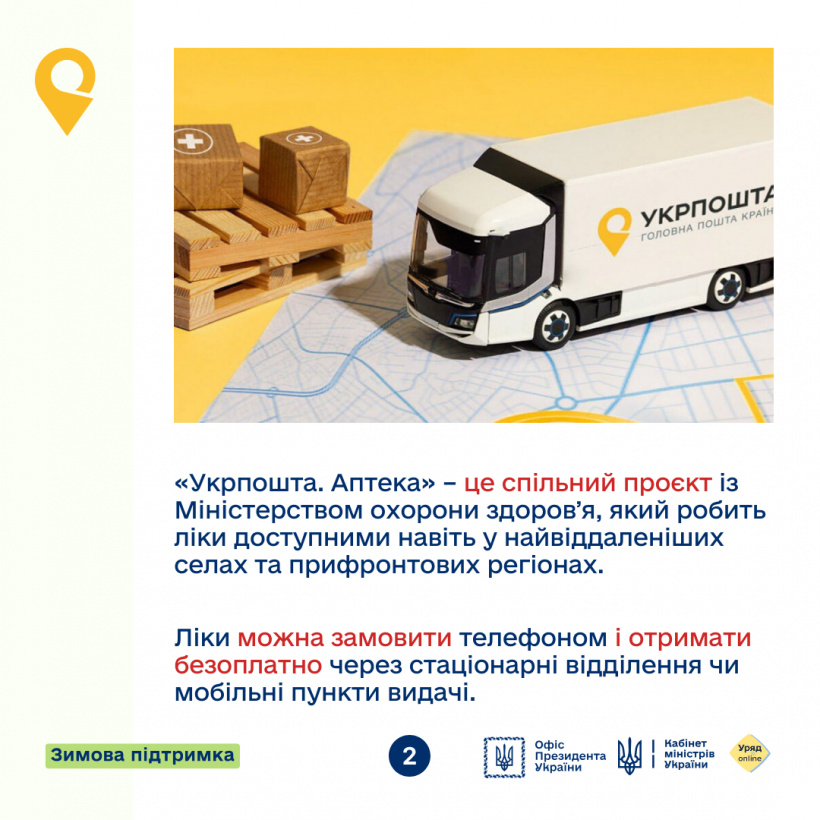 Жителі віддалених сіл та прифронтових територій можуть отримувати ліки Укрпоштою. Доставка безоплатна – як у стаціонарні відділення, так і до мобільних пунктів видачі.