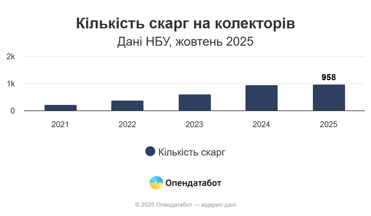 958 скарг на колекторів вже зафіксували цьогоріч. Це вже більше, ніж за весь минулий рік. У середньому, Нацбанк отримує 104 звернення на місяць — на третину більше, ніж торік, і вдвічі більше, ніж у 2023-му.