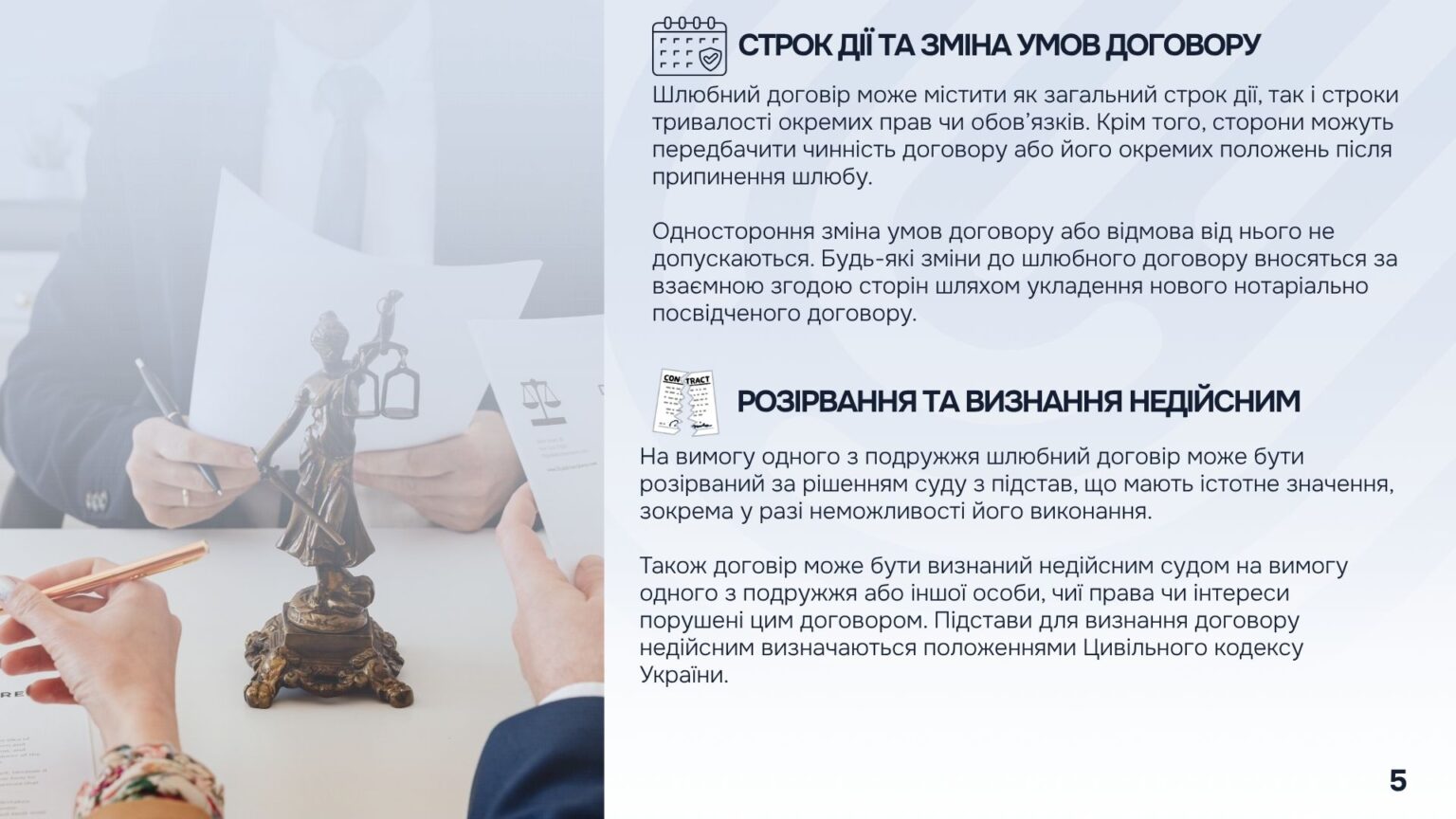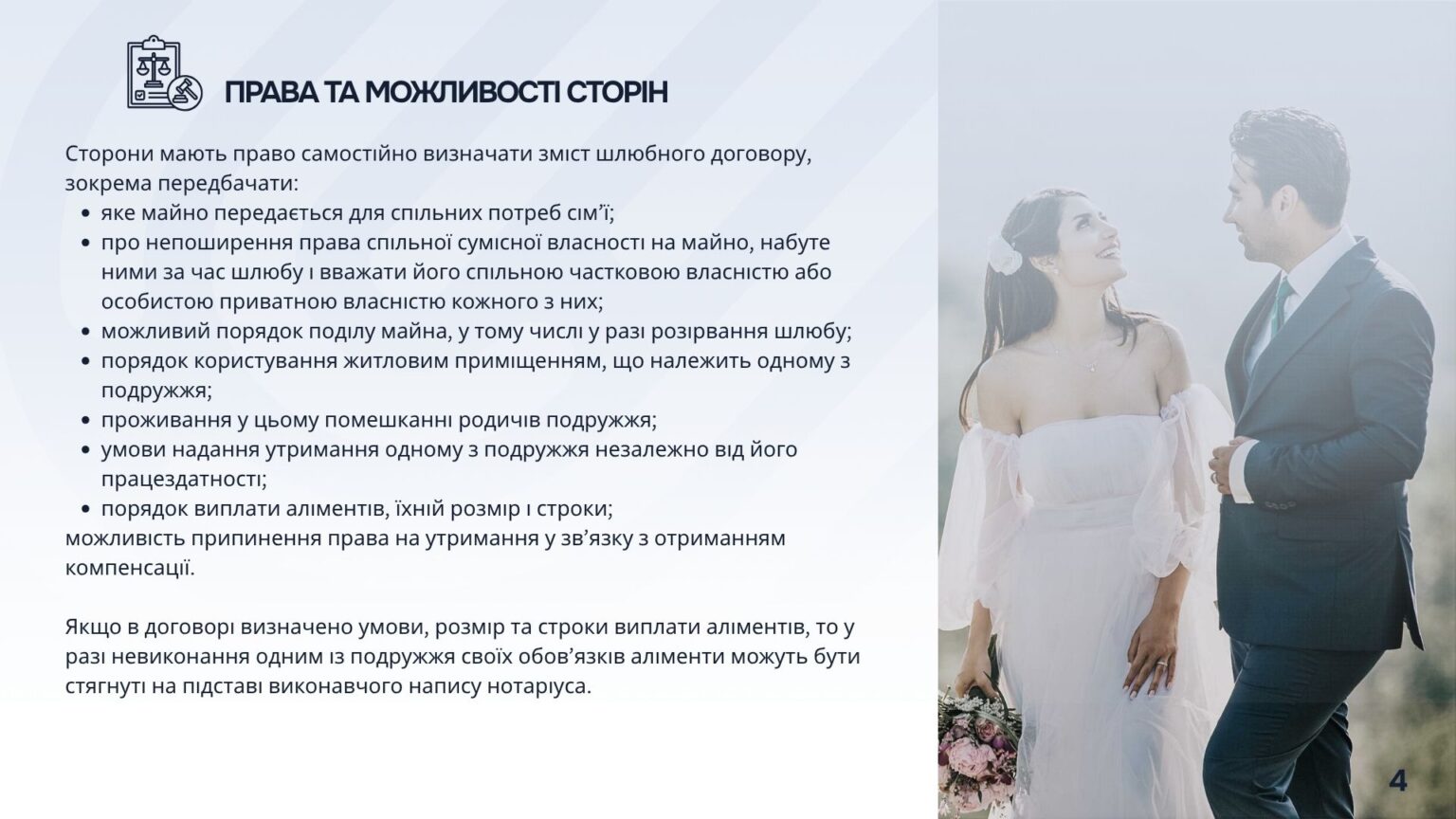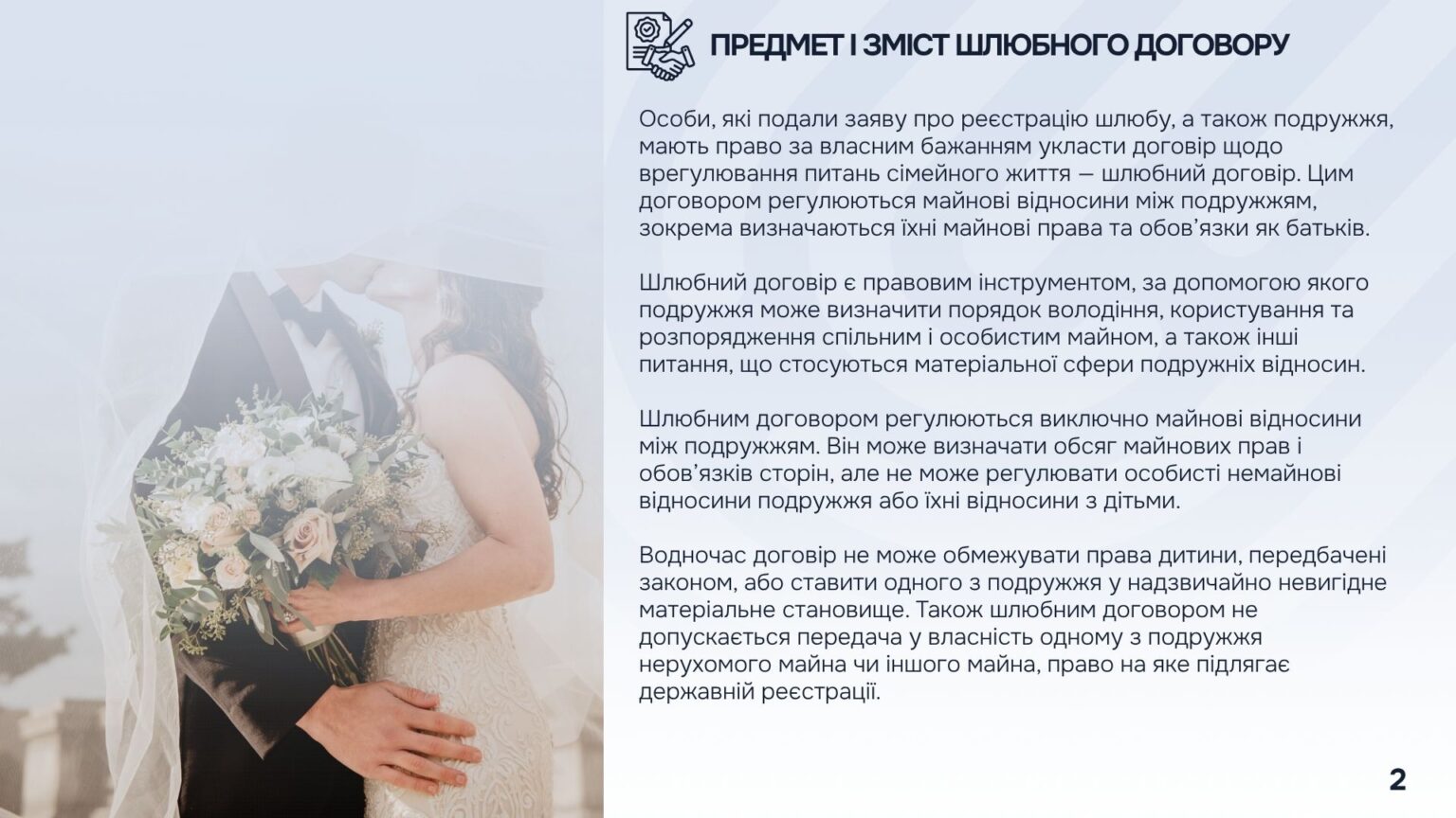 Детальніше про умови укладення, форму, строки дії та правові наслідки шлюбного договору — у нашому матеріалі.