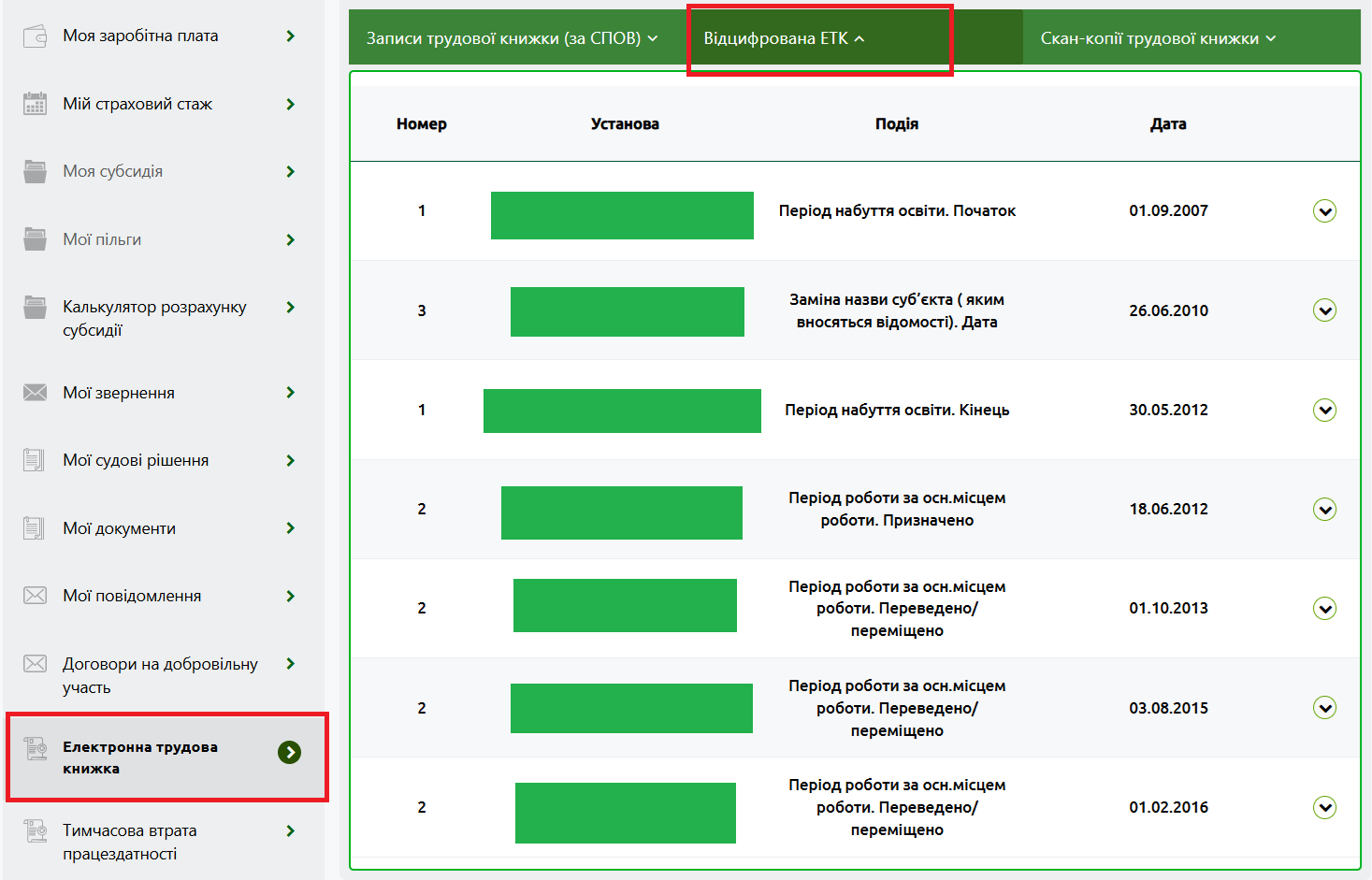 Зайдіть у кабінет на порталі ПФУ. Виберіть розділ «Електронна трудова книжка».