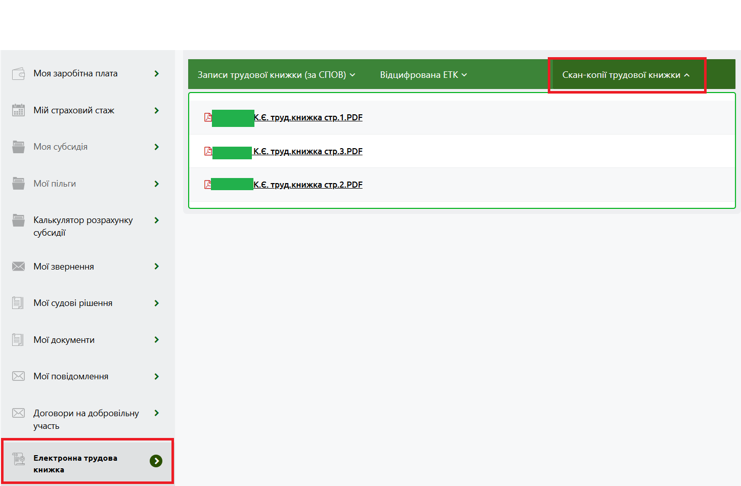 А у вкладці «Скан-копії трудової книжки» можна побачите завантажені файли.