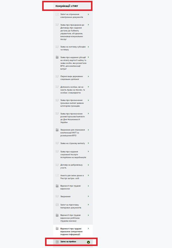 2. Оберіть в розділі “Комунікації з ПФУ” вкладку “Запис на прийом”.