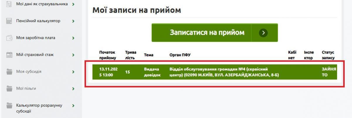 На вебпорталі електронних послуг Пенсійного фонду України функціонує сервіс “Запис на прийом”, завдяки якому можна запланувати зручні дату та час для візиту до одного з сервісних центрів Пенсійного фонду України.