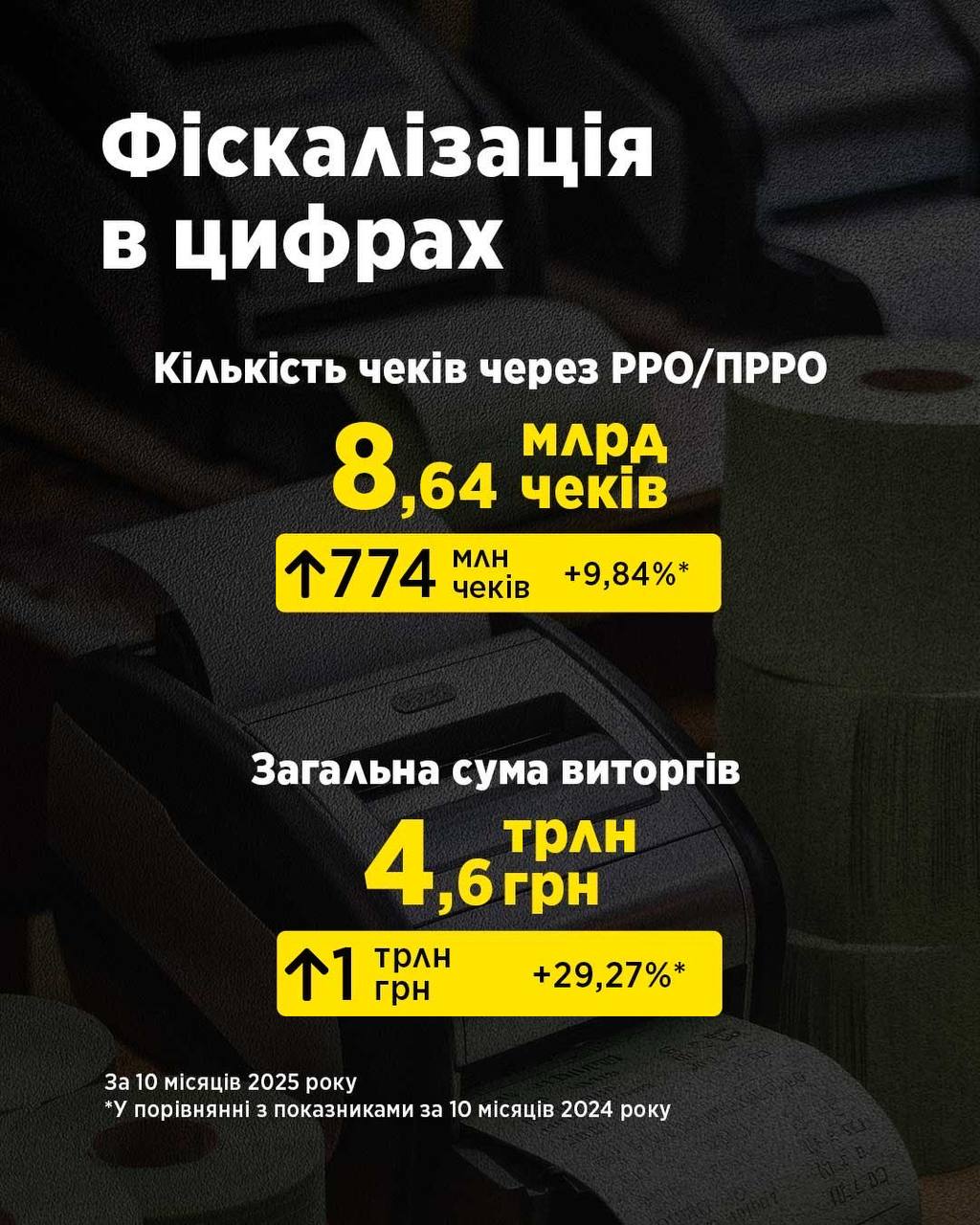 - 8,64 млрд чеків за 10 місяців — на 774 млн більше, ніж торік (+9,84%).