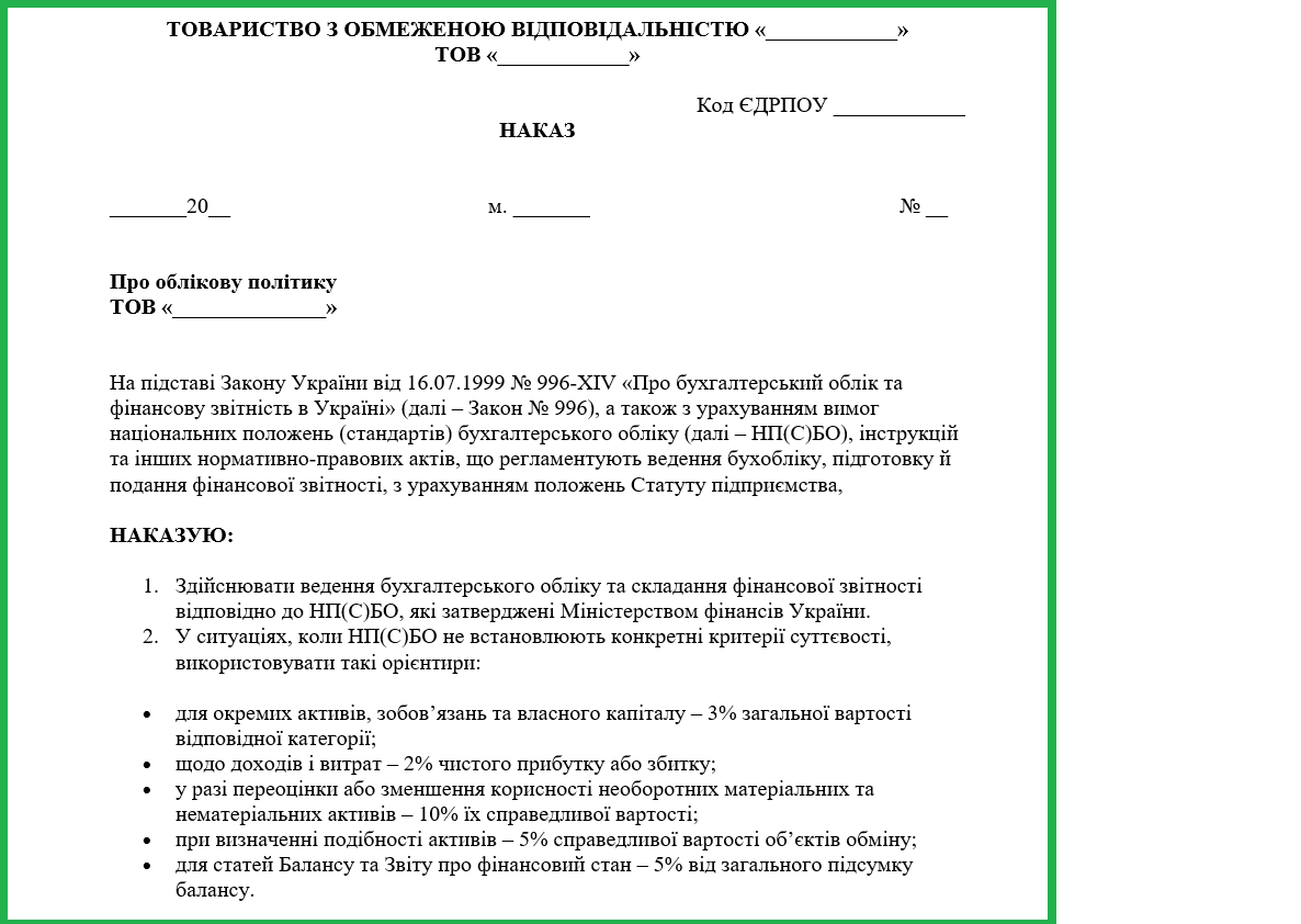 Скачати бланк, зразок, приклад Наказу про облікову політику можна тут