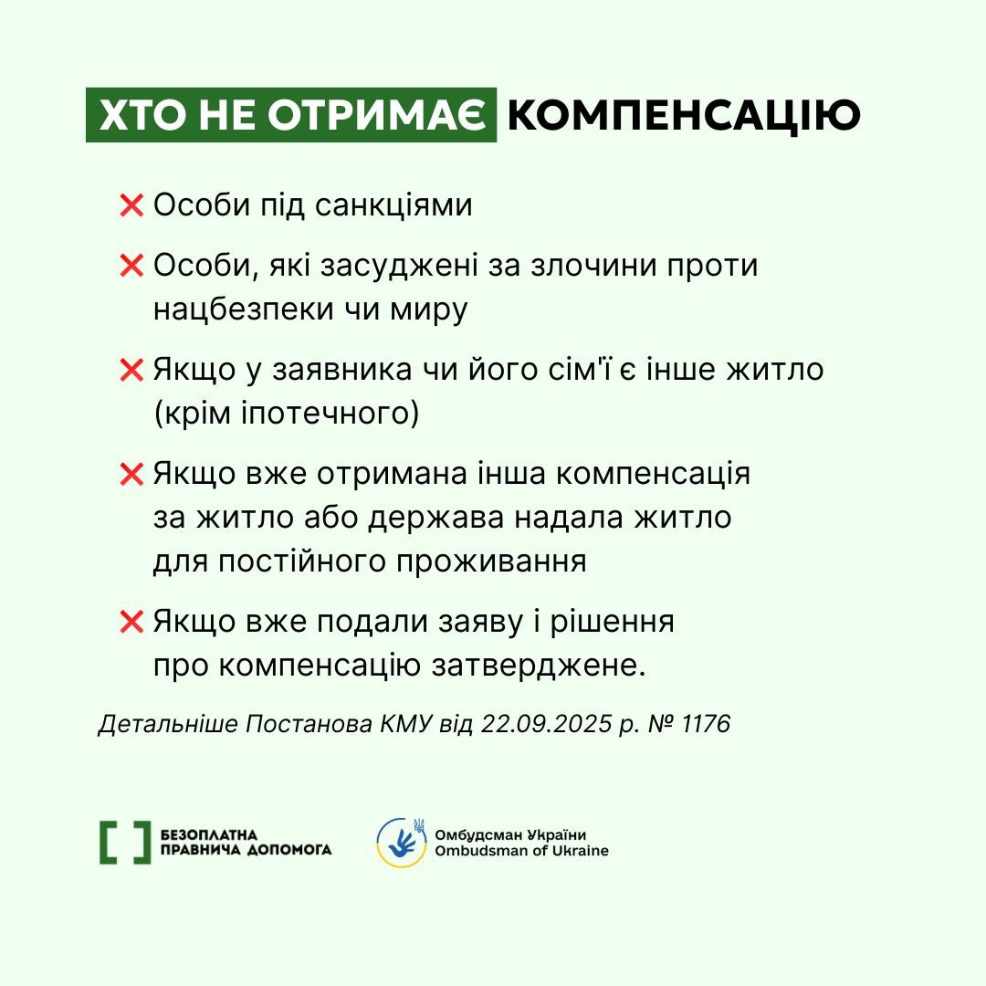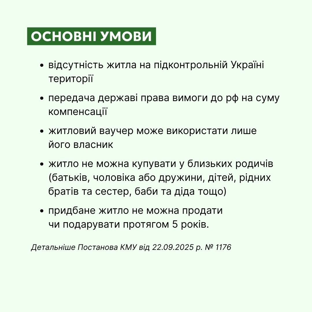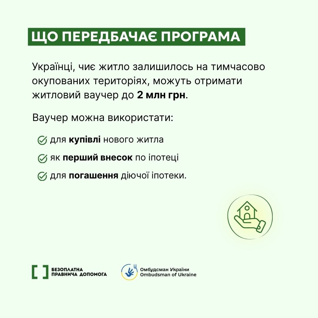 – компенсація надається у вигляді житлового ваучера до 2 млн грн
