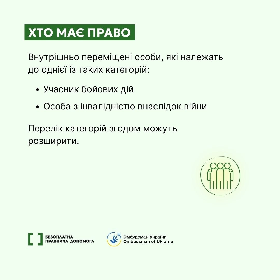 – отримати можуть ВПО з числа ветеранів та осіб з інвалідністю внаслідок війни, які не мають житла на підконтрольній території