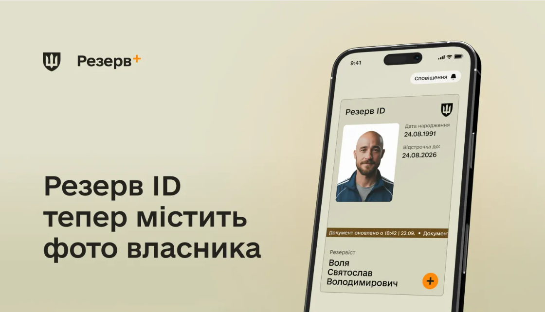 Міноборони оновило застосунок Резерв+: відтепер в електронному документі (Резерв ID) автоматично відображатиметься фото власника.