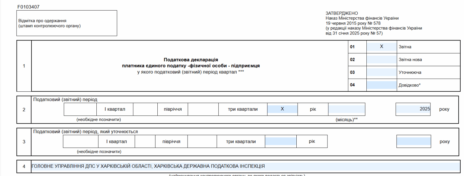 Декларація ФОП 1, 2 група на єдиному податку за 2025 рік