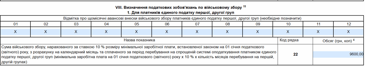 Тож, якщо у певних місяцях ВЗ не сплачено, то “Х” за такий місяць не ставлять. І суму не враховують у рядку 22.