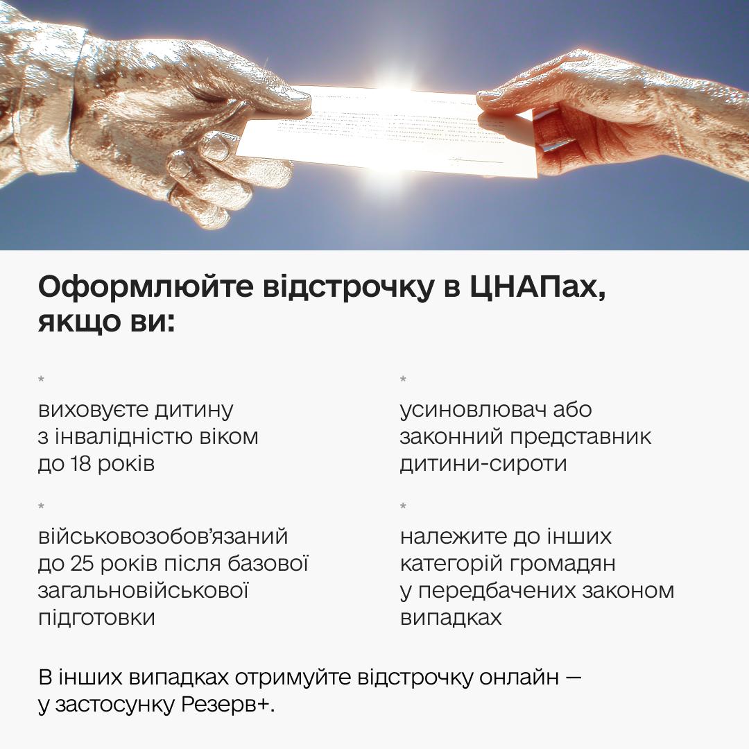Хто має звертатися до ЦНАПу для отримання відстрочки