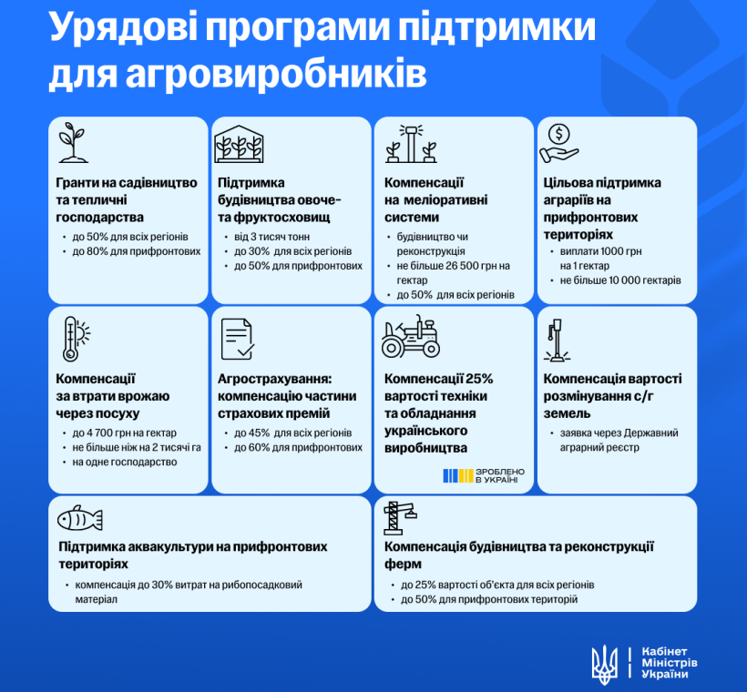 - Розширення програми компенсації с/г техніки українського виробництва в межах політики «Зроблено в Україні»