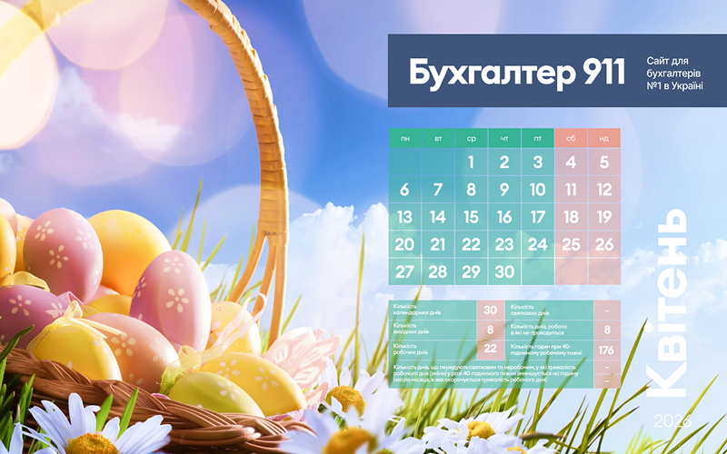 Календар бухгалтера на квітень 2026 року: багато весняних заставок
