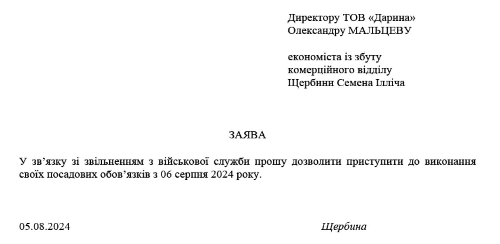 - дату фактичного призову — саме з цієї дати працівника увільняють від роботи;