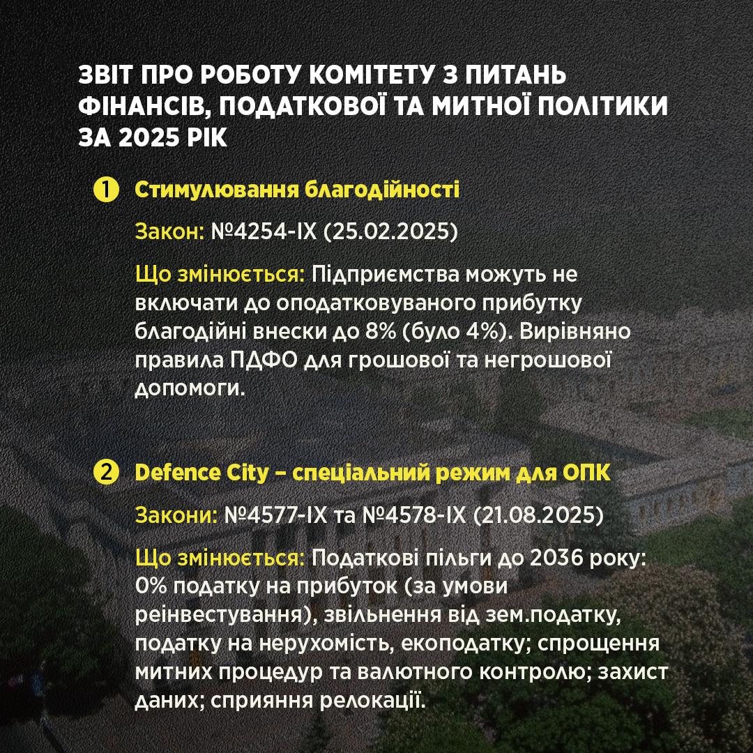 Голова Податкового Комітету ВРУ Данило Гетманцев коротко розповів про результати роботи Комітету у 2025 році.